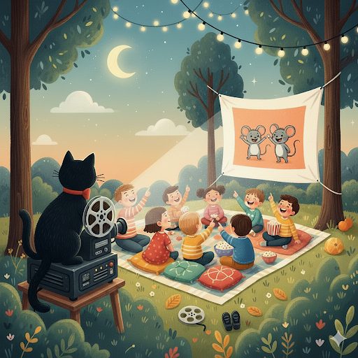 AIで黒猫映劇のイラストを作成してもらいました。エキセントリックな映写機が爆誕しました。