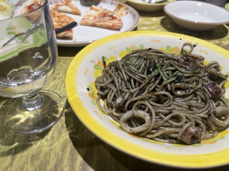 よく言い間違えてしまう、「シャトレーゼ」と「サイゼリア」ひとつだけ言えるのはどちらも庶民の味方。ってことです。イカ墨パスタを久しぶりにチョイス。