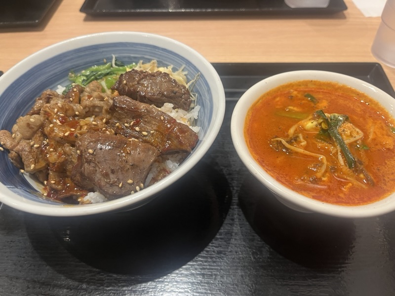 肉とユッケジャンスープで。
