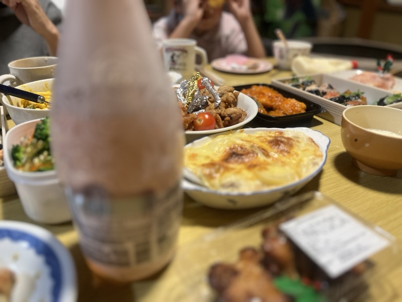 まったりと家族で。「伊勢丹で半額のロースとチキンを」の予定で狙ってましたが、半額にならず。あぶりやきチキンに。おいしかったです。