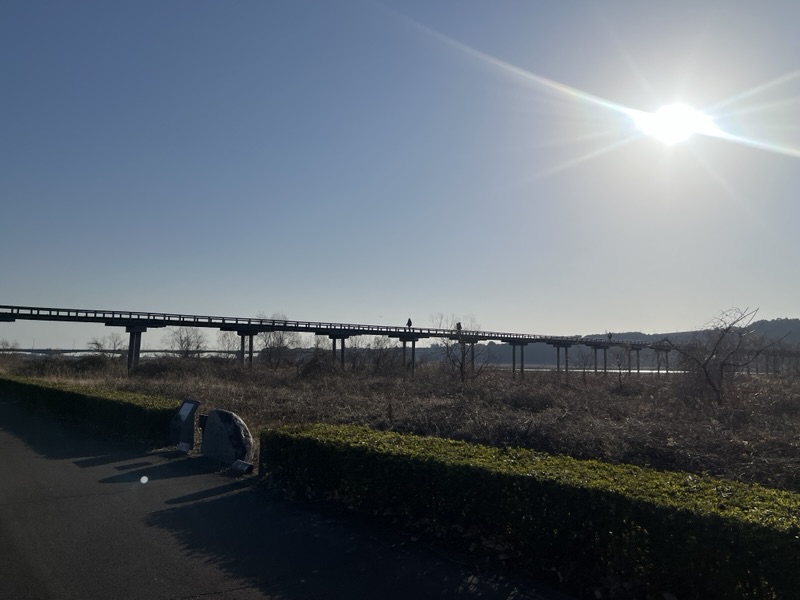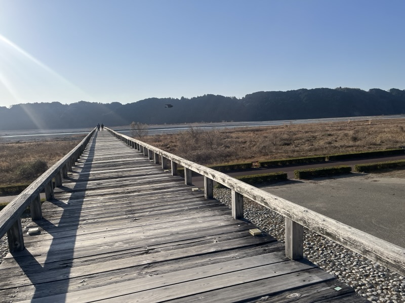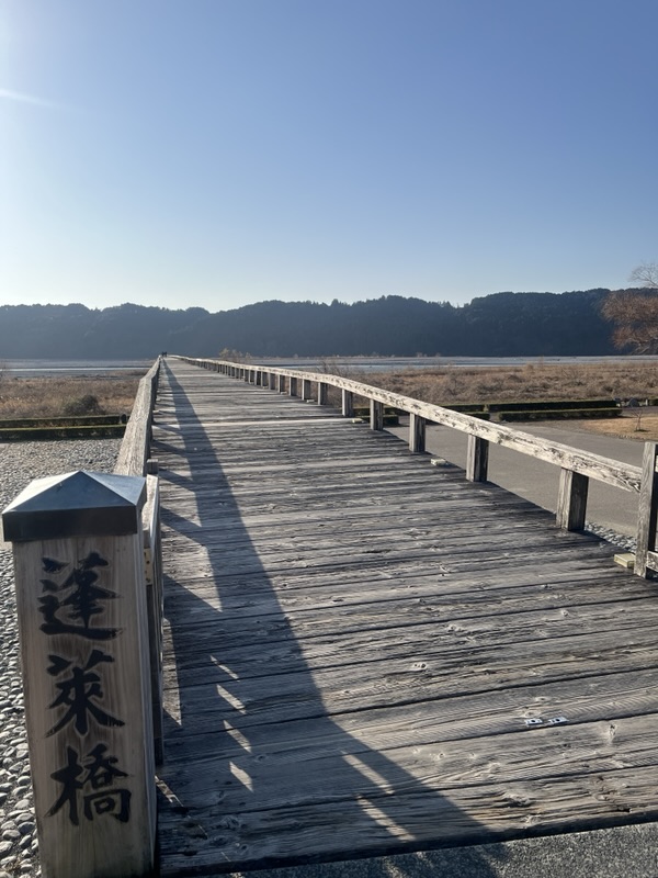 木造のめっちゃ長い橋(全長897.4m 幅2.4m)です。手すりが低く意外と怖い!